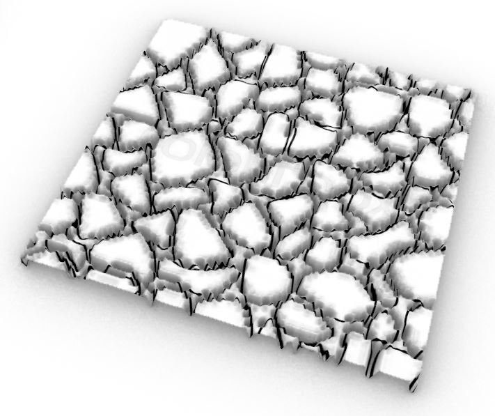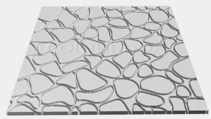 A grandezza voluta , dovrete selezionare o tutte le pietre o solo alcune lavorando a gruppi e con il comando adeguato estrudete su asse Z (per capirci) ottenendo il rilievo delle pietre . Ripetendo e differenziando "l'altezza" dell'estrusione otterrete muri credibili e non orribilmente piatti .