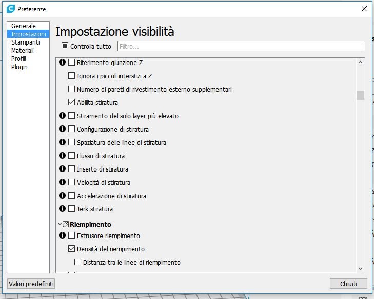 Da una discussione aperta sul Forum DueGi ho scoperto l'esistenza della funzione 'stiratura' nel software di 'slicing' Cura: tramite questa funzione ( ironing in inglese ) viene eseguita al termine della deposizione degli strati una ulteriore passata a maglie molto strette senza apporto di materiale, ma con l'estrusore ben caldo con l'effetto di spianare le crestine tipiche delle FDM.