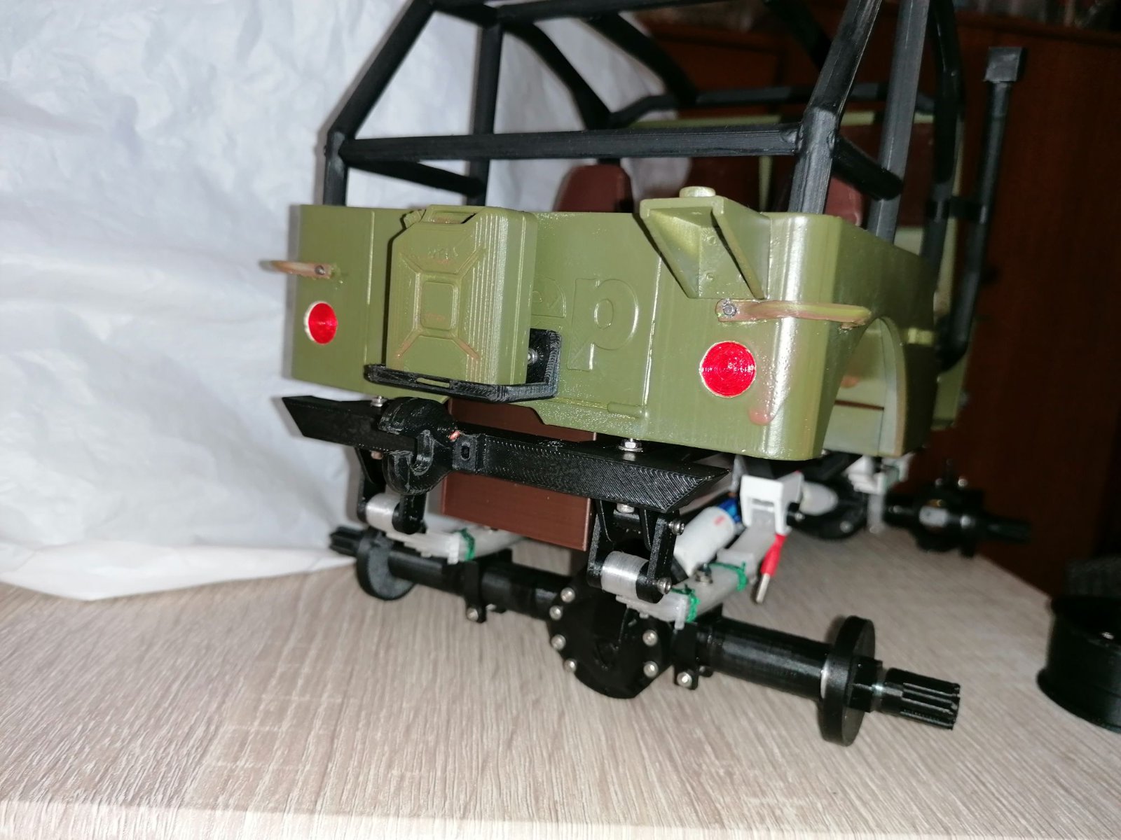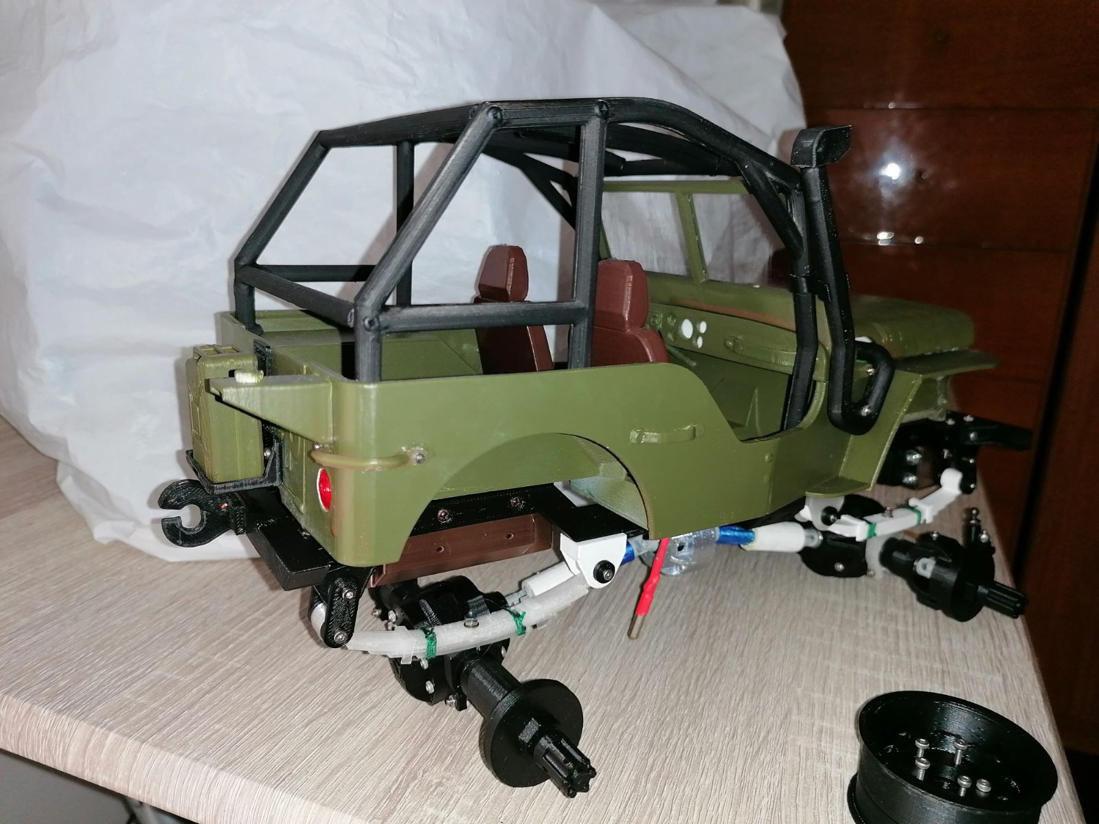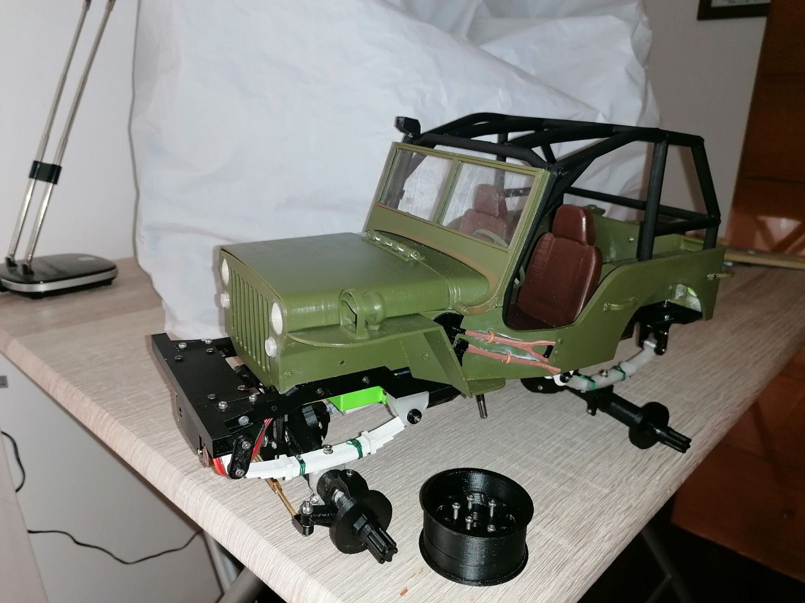 Ho fatto una prova per verificare il funzionamento della trazione totale e tutto è andato bene- Attendo l'elettronica -il radiocomando a volantino - per completare la Willys.