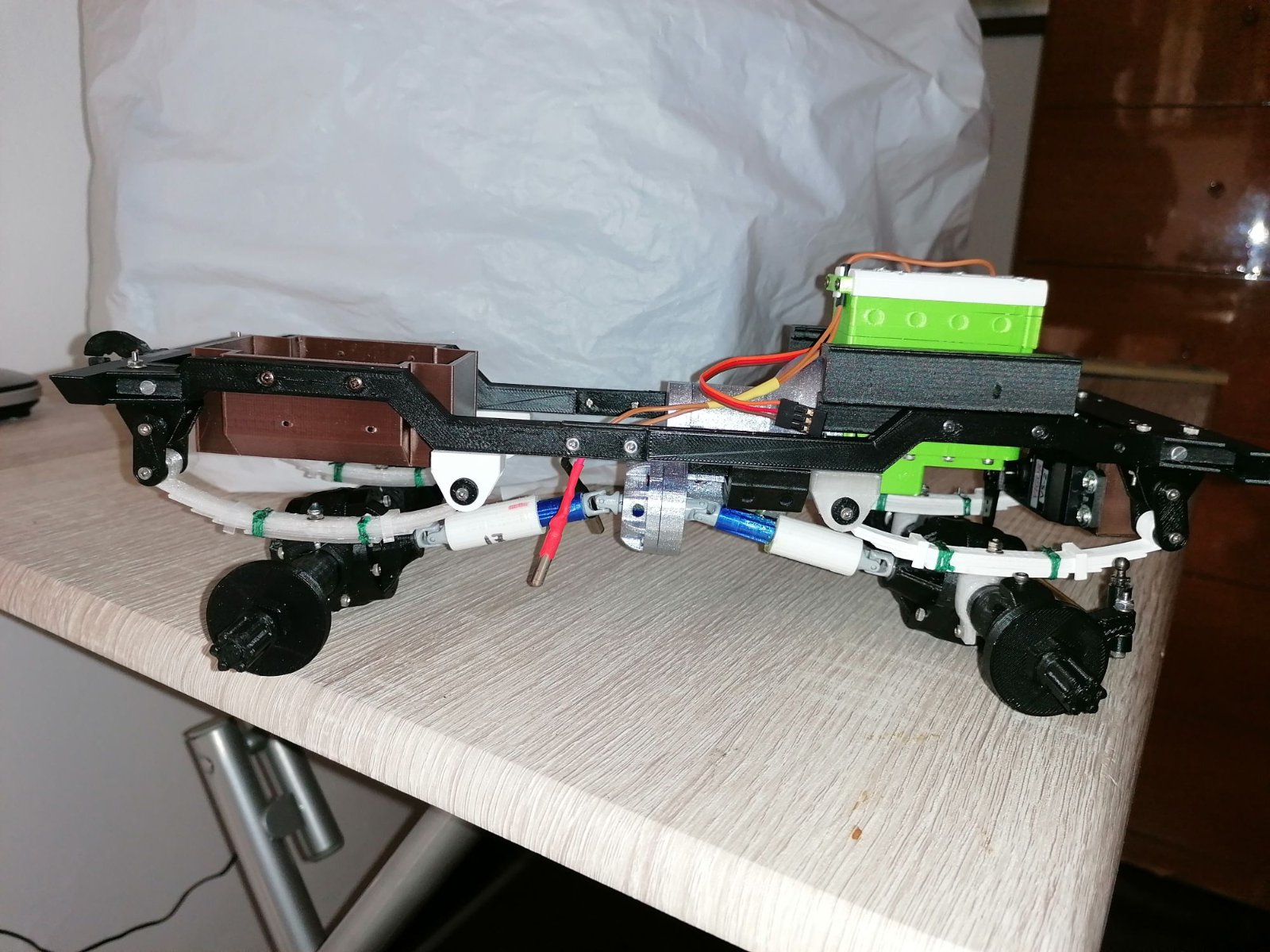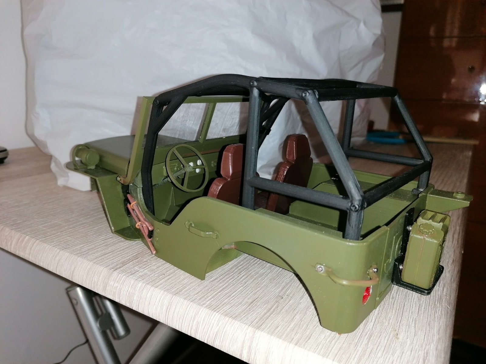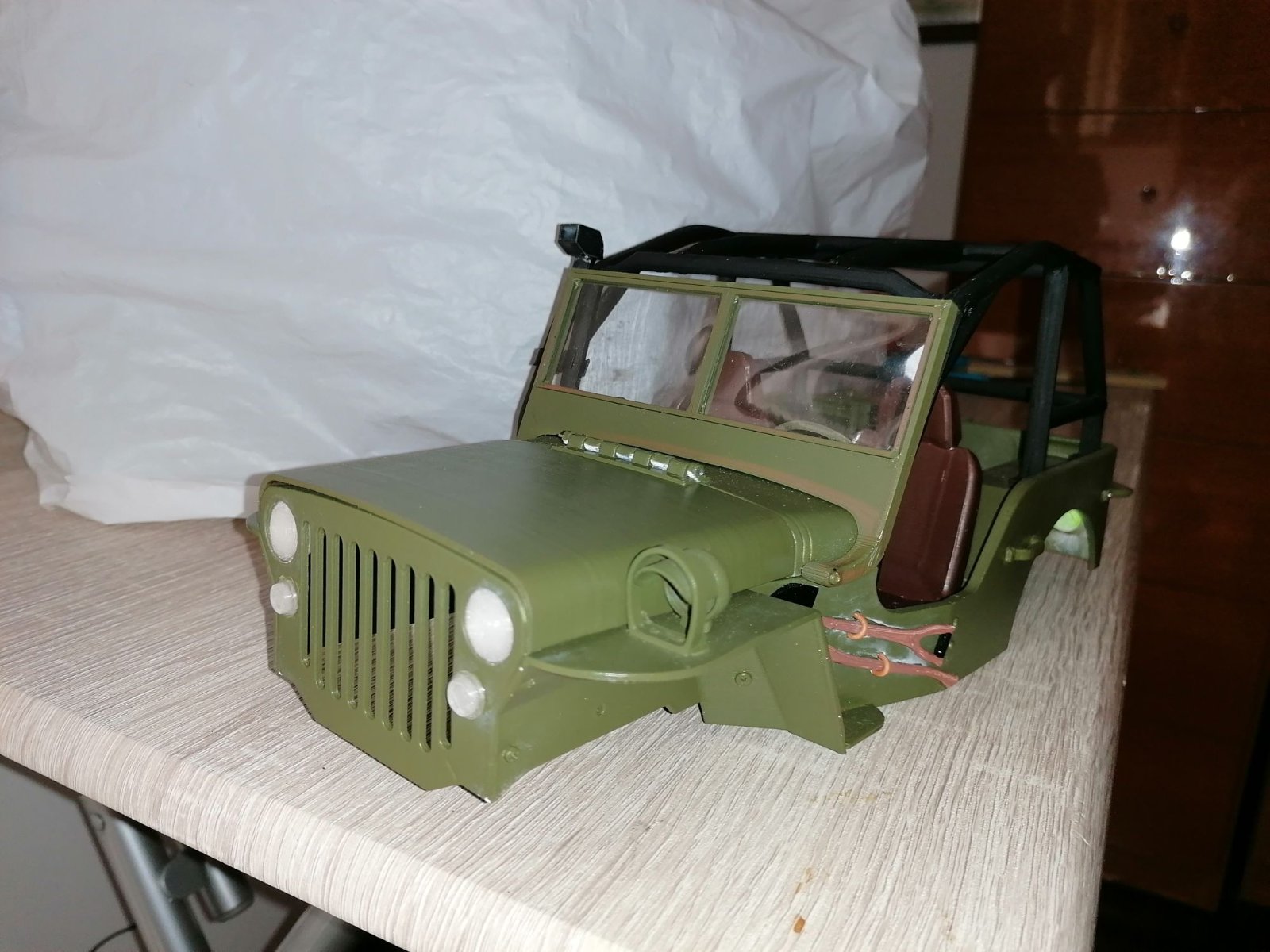 Ho fatto una prova per verificare il funzionamento della trazione totale e tutto è andato bene- Attendo l'elettronica -il radiocomando a volantino - per completare la Willys.