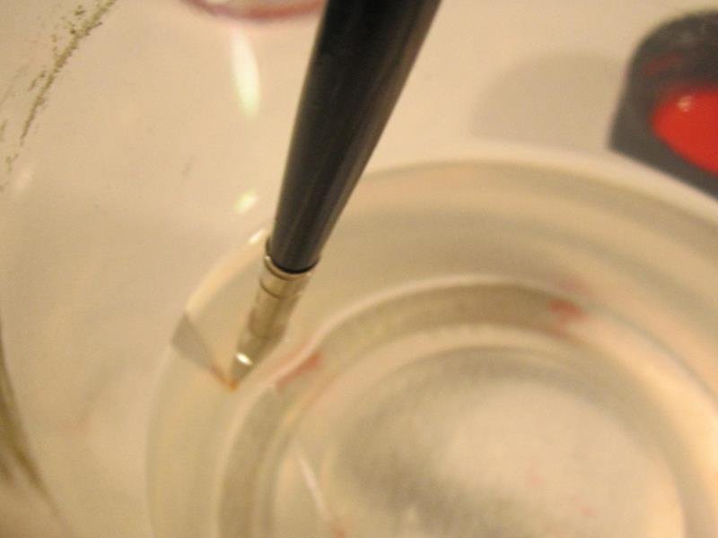 la fase più semplice ma va fatta con metodo , occorre intingere le setole è NON fare arrivare il colore sulla parte metallica che crimpa le setole.