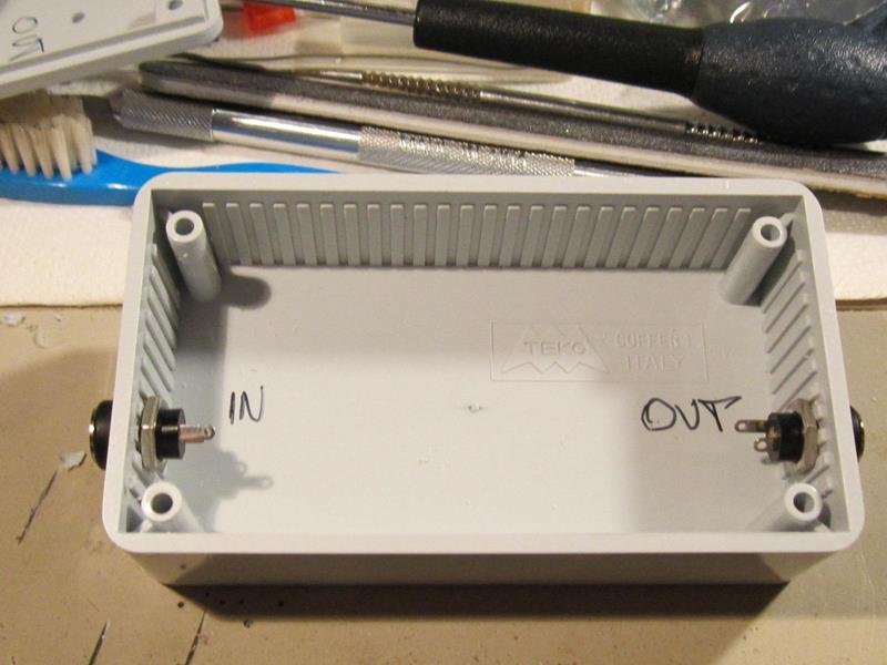 Ho creato i fori per i due jack di collegamento saldando poi i vari cavetti ( più avanti vi posterò lo schema ).