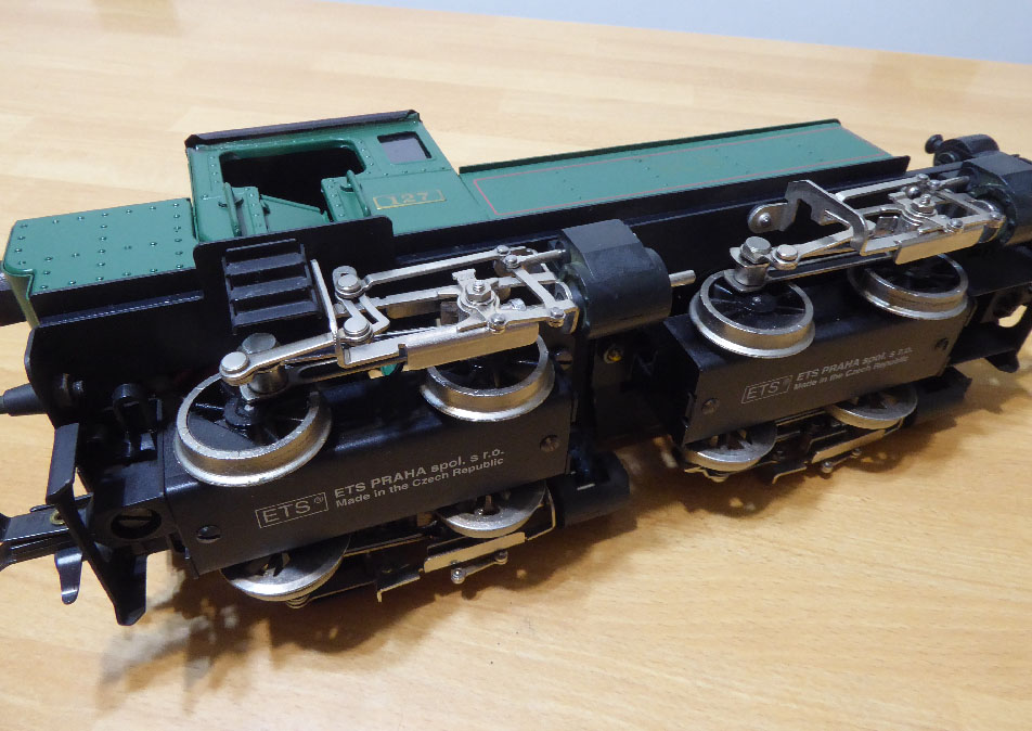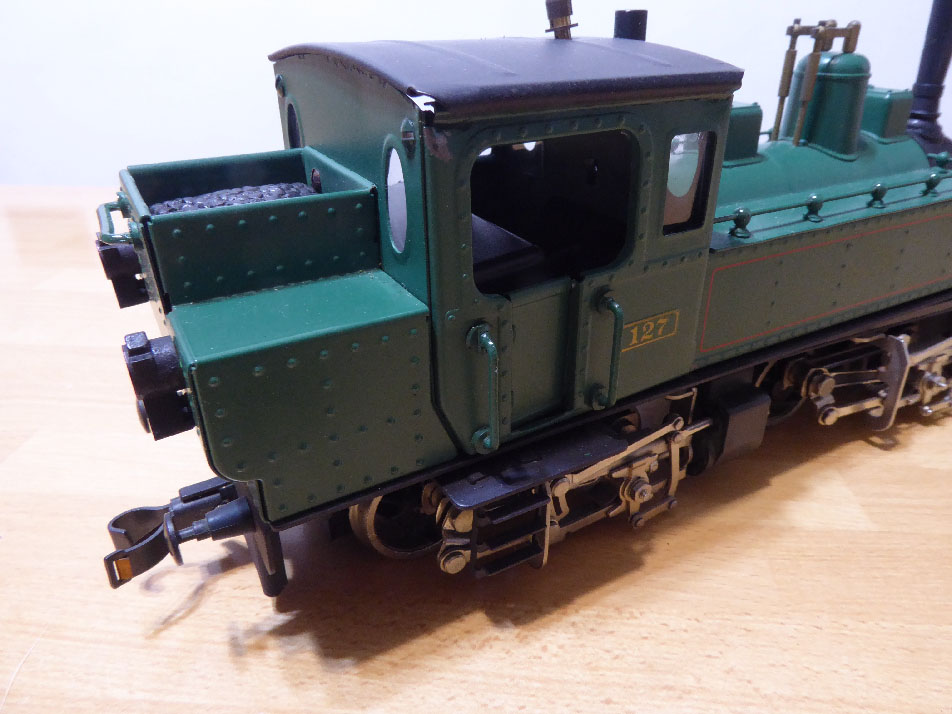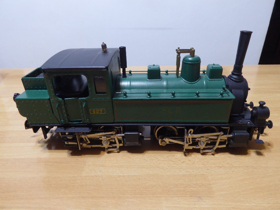 Recentemente il mio amico e noto scrittore di libri ferroviari, Giorgio Chiericato, mi ha venduto questa bella Mallet in scala 0 di una ditta di Praga a noi poco conosciuta, ETS che produce modelli artigianali in lamierino, che non hanno la pretesa di essere esattamente corrispondenti al vero, ma similari ed anche questa Mallet delle ferrovie svizzere, SCB, non ne è esente, le foto infatti che ho trovato del prototipo al vero in realtà , sono piuttosto differenti oltre la mancanza di alcuni particolari omessi nel modello, sono modelli con un sapore vintage che nascono proprio per giocarci con i trenini in grande scala come un tempo ; a catalogo ho visto esistono altre locomotive e vagoni , ma sono modelli piuttosto rari da noi e di scarso interesse, di bell'effetto se esposti in vetrina a ricordo di quei tempi, non so dire però il loro costo e convenienza nella repubblica ceca e se tale ditta esista ancora, presumo con cautele fossero modelli degli anni 70-80 ma non ne ho la certezza, chi ne sa di più ben venga , novità assoluta anche per me quindi , giorgio lo ha avuto poichè collaborava con la scomparsa rivista Mondo ferroviario che si è servita del modello per recensirlo, quindi non esiste da noi un importatore . Lunghezza 24 cm , peso 890 gr e si sentono; due motori, uno per carrello ; porte cabina moderatamente apribili così come i portellini della camera a fumo frontali , le luci sono a led , ho dipinto in bianco i fanali anche se credo che le ferrovie svizzere avessero di norma le coppe interne i fanali in argento e finiture esterne in ottone . Volevo rifare il carbone vero sulla carboniera , ma poi ho lasciato stare e non ho apportato altre migliorie se non aggiungendo i vetri in acetato che privi, mi davano un po fastidio, volendo avrei potuto realizzare la pompa sull'avancorpo lato destro presso il fumaiolo, ma ho preferito mantenerne la sua originalità .Naturalmente non avendo uno spezzone di binario, non ho potuto provarla, sicuramente dovrebbe essere interessante con i suoi robusti movimenti dei bilellismi . Modello contenuto in scatola originale e numerato per tiratura .