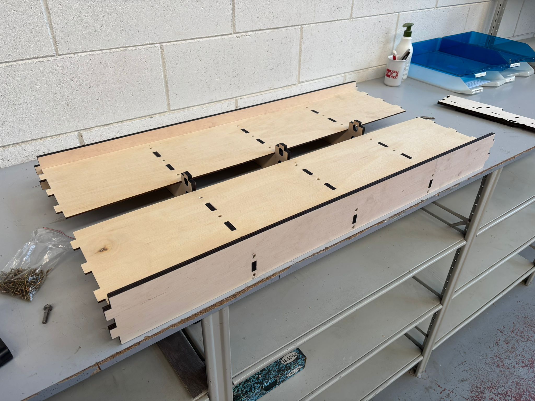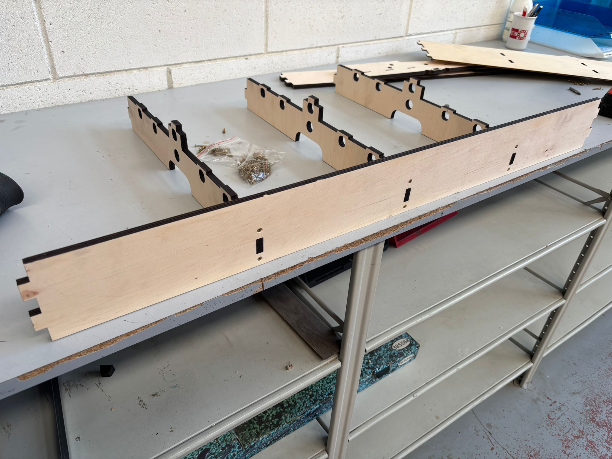 Una volta fissate le 3 traverse alla fiancata fermandolo con le 6 viti e fatto uso della colla, si passa a posizionare il piano ed anche qui viti e colla