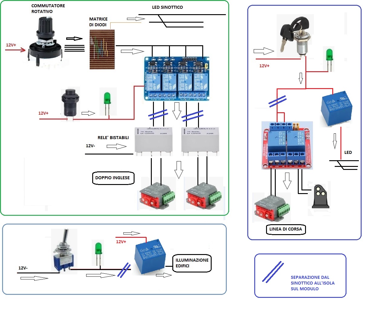 Questi 2 moduli avranno un sinottico con pulsanti per il doppio inglese ed un interruttore a chiave per il deviatoio in piena linea di ingresso al raccordo.