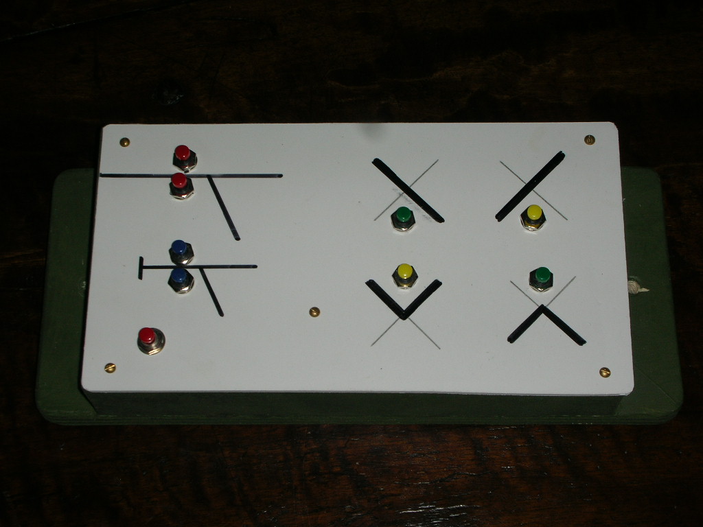 Il sinottico è stato fatto con la solita piccola matrice di diodi e al posto del commutatore rotativo ci sono pulsanti che agiscono su un encoder ricavato dai duttili decoder Dcc01 di DCCWolrd. Le immagini spero rendano l'idea del funzionamento.