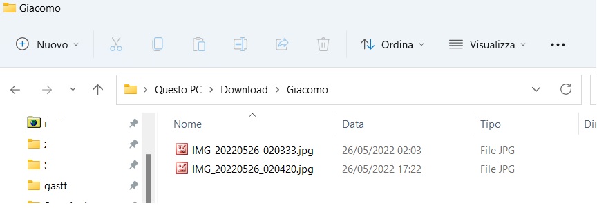 Quindi prendiamo le nostre immagini (fate sempre una copia degli originali) dalla device che le ha acquisite e su PC, con "Esplora risorse" creiamo una cartella e andiamo a scaricare le nostre immagini.