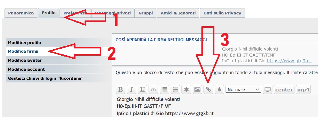 Ricordo che per far questo si deve andare sul proprio "Pannello di controllo utente", in alto a sinistra... (previo essersi copiati il link corretto, con il browser in uso)