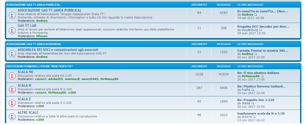 Ho notato che ora finalmente si vede anche nell'indice tutta la sezione dedicata ai moduli GasTTgavinca ha scritto:Io continuo a non vedere i forum relativi alla scala TT.