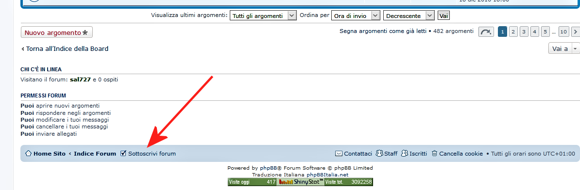 in basso nella pagina dell'argomento cliccare su "Sottoscrivi forum"