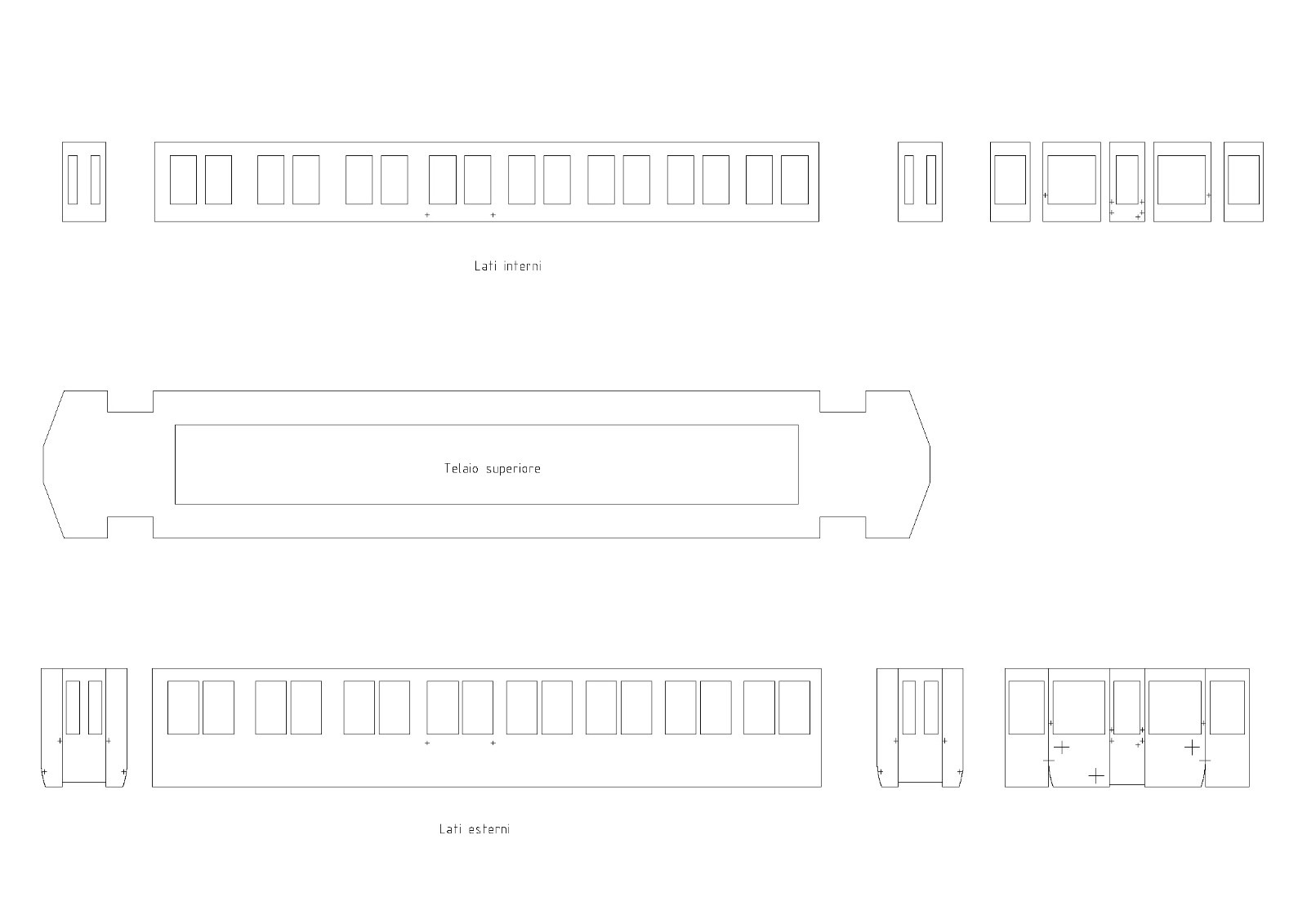Il testo principale nell’incavo del telaio “CARROZZA AUTOMOTRICE ELETTRICA A TERZA ROTAJA” ed anche le siglature verso le estremità, con apici e pedici, sono impossibili per la mia stampante ink-jet.