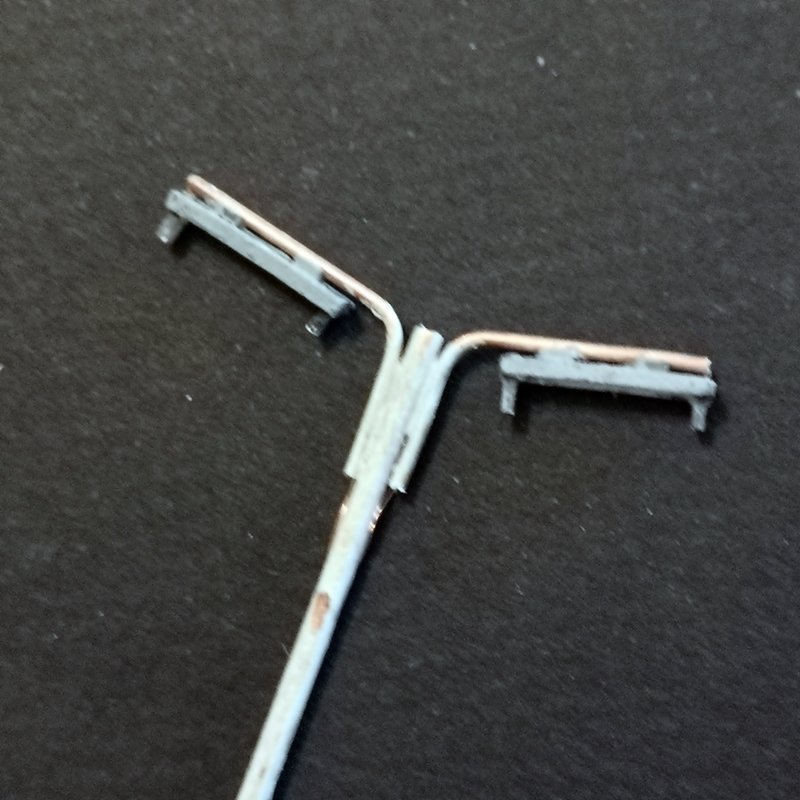 - braccio porta plafoniera lunghezza 27 mm circa piegato a 10 mm parte bassa e 17 mm parte della plafoniera realizzato con tubo di rame diametro 1 mm