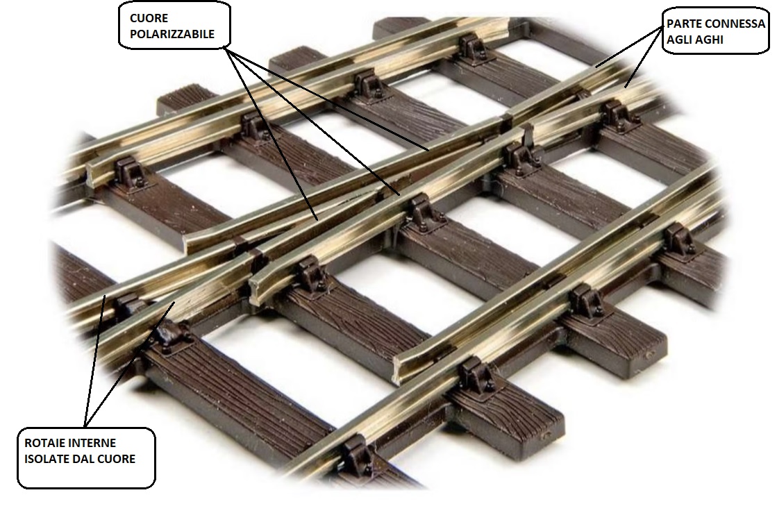 A completamento, si interponevano scarpette isolanti alle due rotaie del cuore.