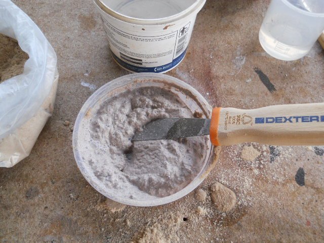 Un mio collega tedesco di Norimberga mi ha dato un ottimo consiglio a proposito: vinavil leggermente diluito con acqua e sabbia da lettiera per gatti (2 kg costa 1 euro in certi supermercati) è leggero,non si formano crepe e si modella facilmente. Dimenticavo che la sabbia va setacciata.