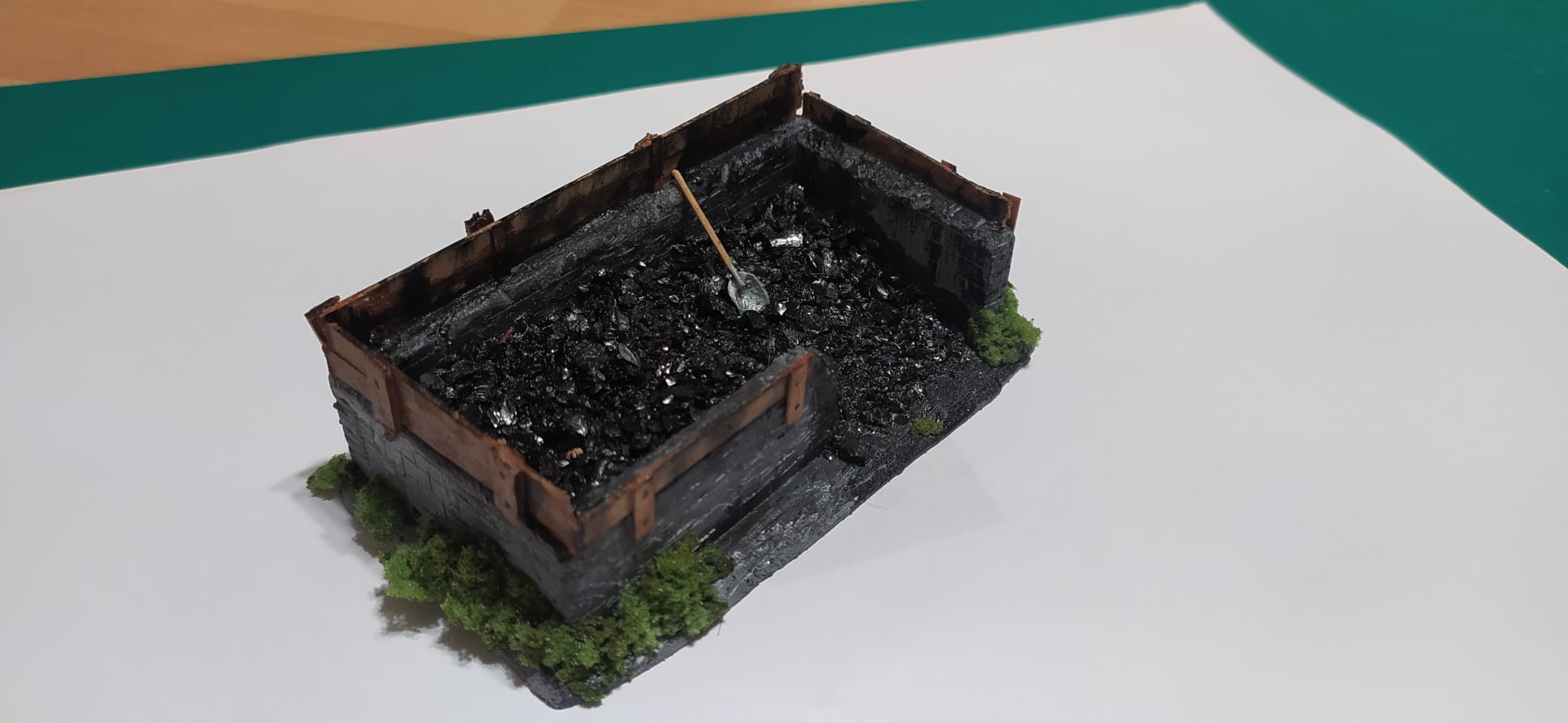 Un amico mi chiese di realizzargli per il suo plastico una carboniera presso il deposito ; lo spazio era assai ridotto , giusto un angolino, quindi ho rimediato velocemente in poco tempo, carbone macinato, forex e qualche listello .