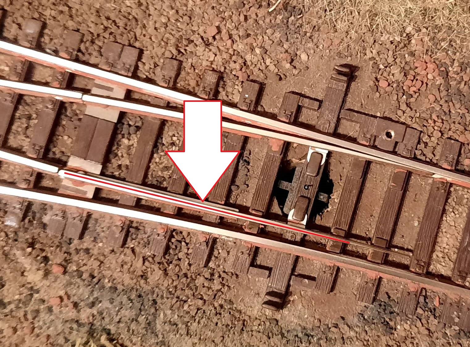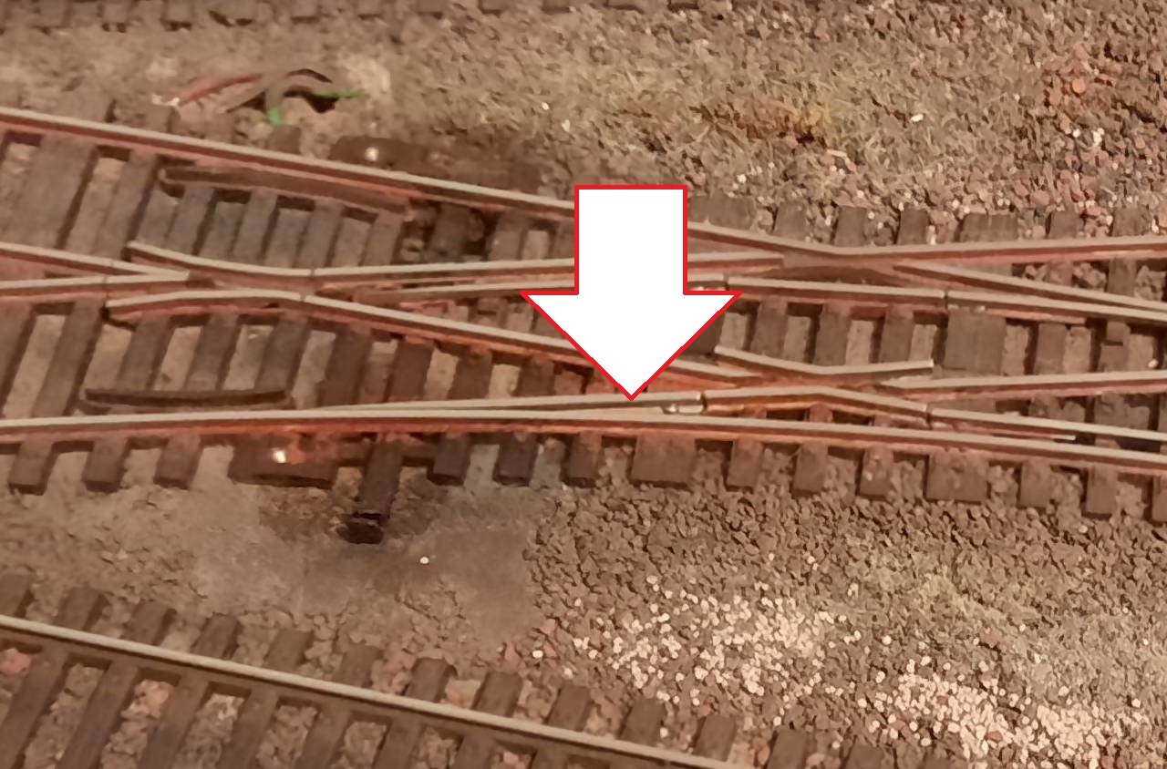 In questo scambio, ho un problema nel punto indicato dalla freccia. in pratica quella parte di ago fatica a prendere corrente. A furia di pulirlo a più non posso, qualche miglioramento c'è stato, ma continua a passare poca corrente.