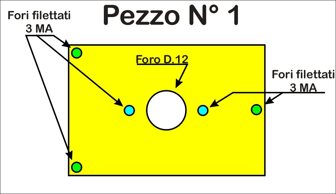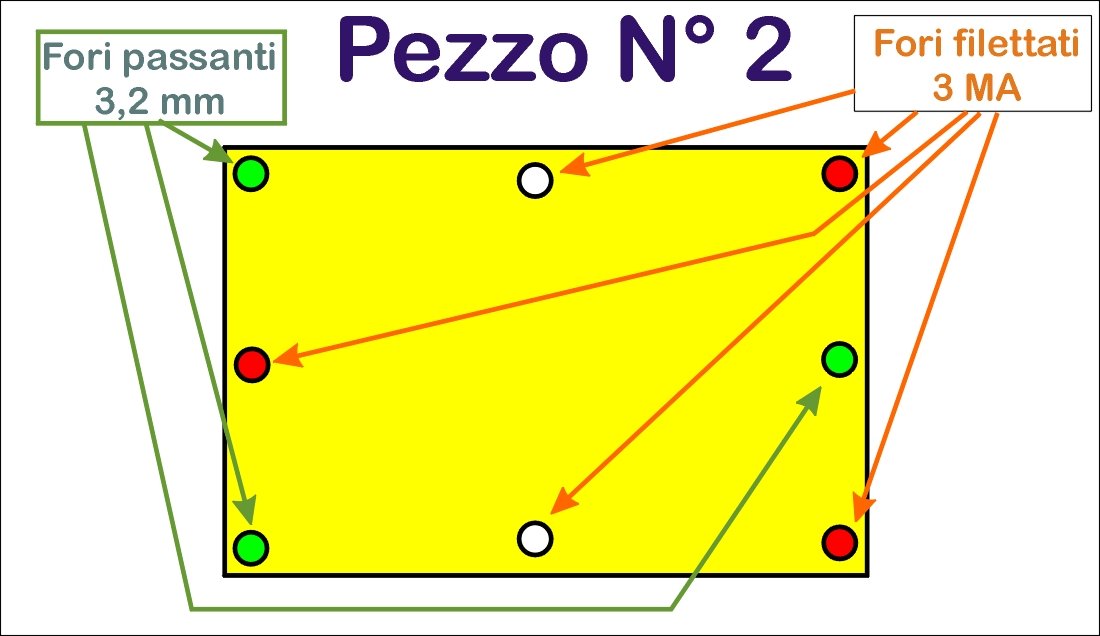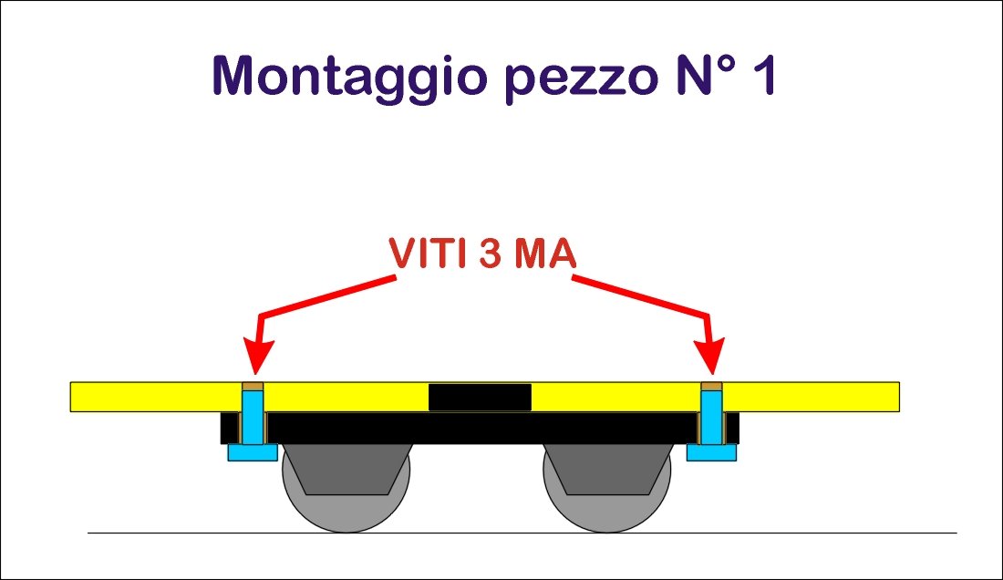 Il pezzo N°1 è quello che andrà avvitato al carrello, tenendo conto anche degli ingombri e spazi del carrello stesso.