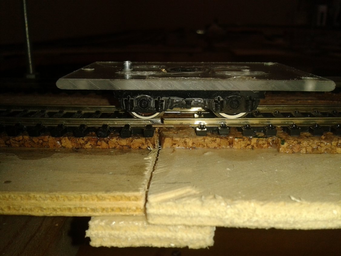 Vi ho appoggiato sopra un pezzo di binario. L'ho fissato con il nastro isolante alla bolla.