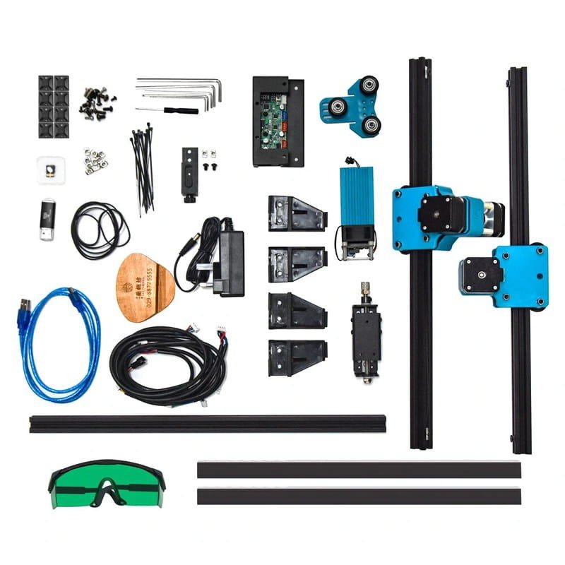 confermo che un paio di occhiali non proprio eccezzionali sono compresi nel kit, riguardo il pericolo del fascio laser, in parte è ridotto essendoci una protezione laterale sul modulo con aggangio magneticofermo restando che non bisogna sottovalutare il pericolo, si potrebbe anche proteggere la macchina con pareti laterali ed inserire una webcam per controllare il lavoro a distanza, magari mettendo un piccolo filtro sull'ottica della camera, quando si lavora non fare accedere altre persone ed anche animali per chi li possiede.