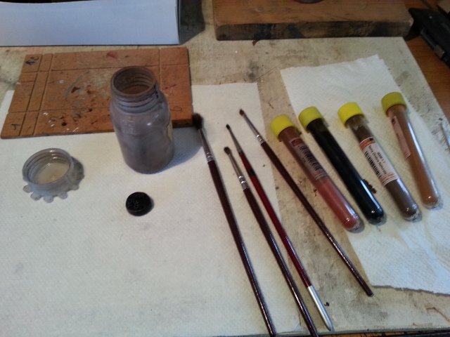 aggiornamento diorama operativo scalo merci fs como lago: finito il bidone con il fuoco creato con un led, aggiunta anche una matassa di filo di ferro fatta con filo d'ottone , e finito anche il tavolo con pane fiasco di vino e altro, creati con il milliput, mi sono venuti un pò grandi ma è la prima volta che uso il milliput e comunque sono oggetti veramente piccoli difficili anche da modellare.