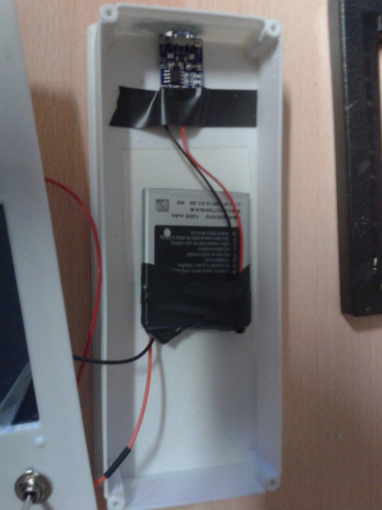 la batteria (recuperata da un vecchio cellulare Samsung, con schedina usb per la ricarica):