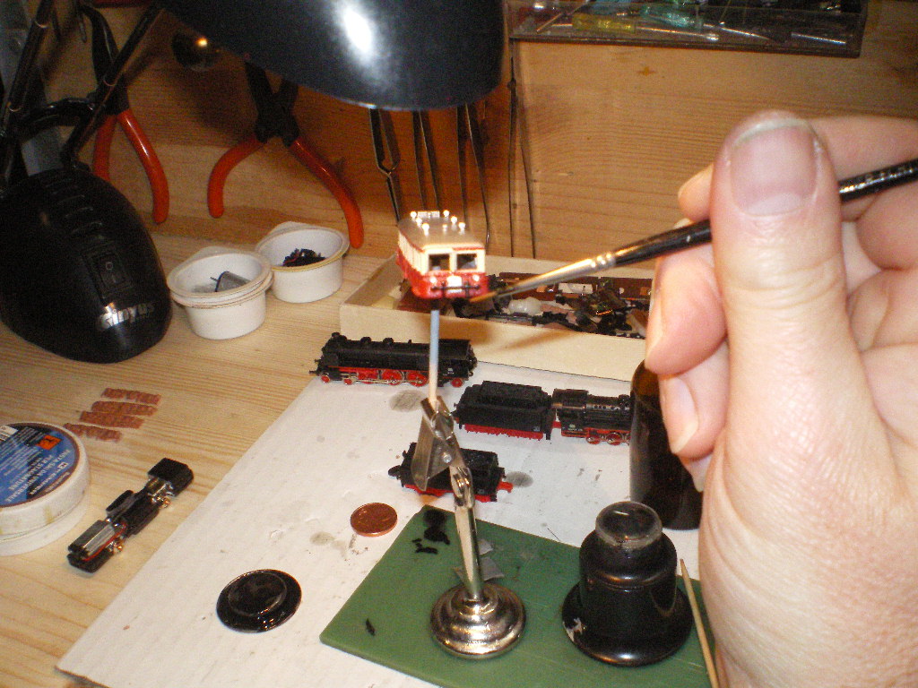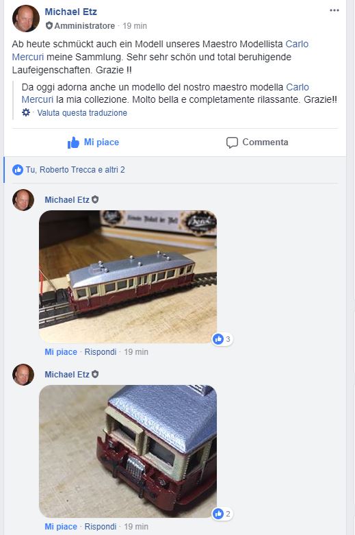 Le prime due foto sono di Klaus Steuer, e sono state postate sulla pagina FB Trainini, le altre mostrano una fase della rifinitura a pennello di alcuni particolari, l'altra la scatolina-contenitore per la custodia e la protezione durante il lungo viaggio dall'Italia alla Germania!!