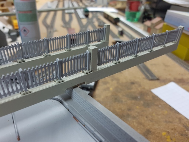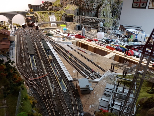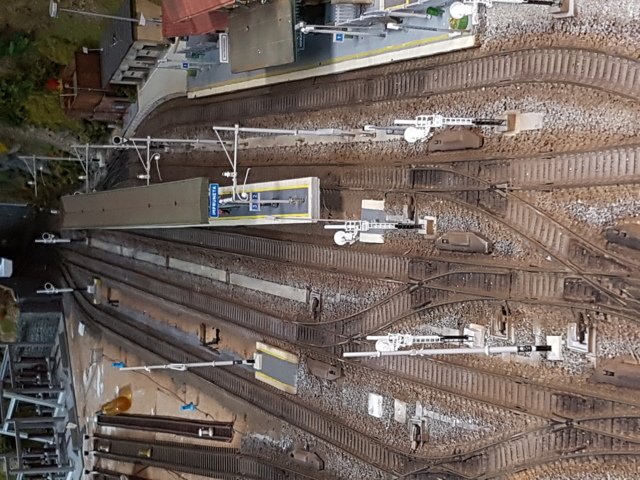 Una piccola riflessione, non avevo mai fatto una stazione con la linea aerea e devo dire che è stata un grosso impegno soprattutto diprogrammazione dei lavori. Sbagliare una sequenza di lavoro vuol dire rischiare di non riuscire più a lavorare in alcuni punti. Quindi la difficoltà è stata quella di lavorare non direttamene sul plastico ma in posto diverso con l'obbligo di rispettare le misure in maniera molto attenta per assicurare gli incastri.