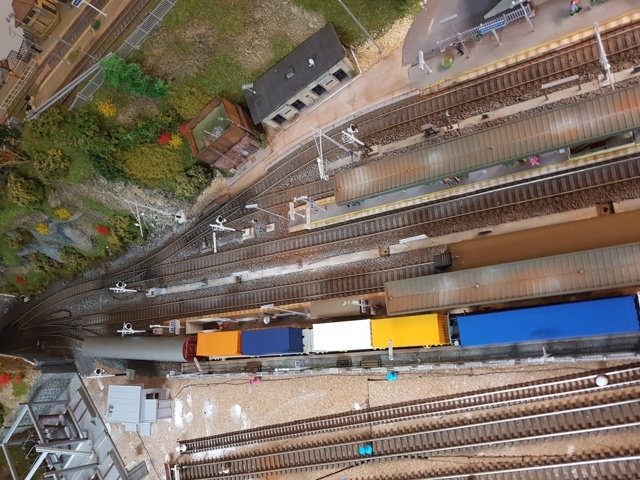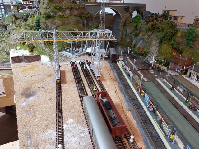 Ho completato l'ultimo marciapiede, direi quello di servizio, per i treni merci in attesa di entrare nello scalo container ma soprattutto ho modificato leggermente il piano binari dello scalo. Ho avvicinato uno scmabio ad un doppio inglese e tagliando a misura voluta un tratto di linea ho aumentato il piano di lavoro della gru a ponte allontanando, contestualmente, i binari dello scalo dal binario di corsa n.5.