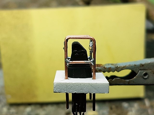 Per il sistema di protezione sistente intorno alle marmotte ho realizzato una protezione con del filo di rame da 0.8 mm opportunamente piegato e saldato a stagno.