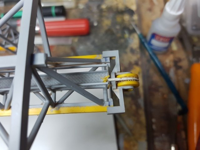 Ne abbiamo discusso molto con il mitico Ed sul come fare e poi la soluzione, molto semplice, mi è venuta vedendo una vera gru similare in uno scalo container in Francia. Ma non vi dico di più altrimenti la fotoguida che ho intenzione di realizzare, se tutto funziona, non avrà più interesse.