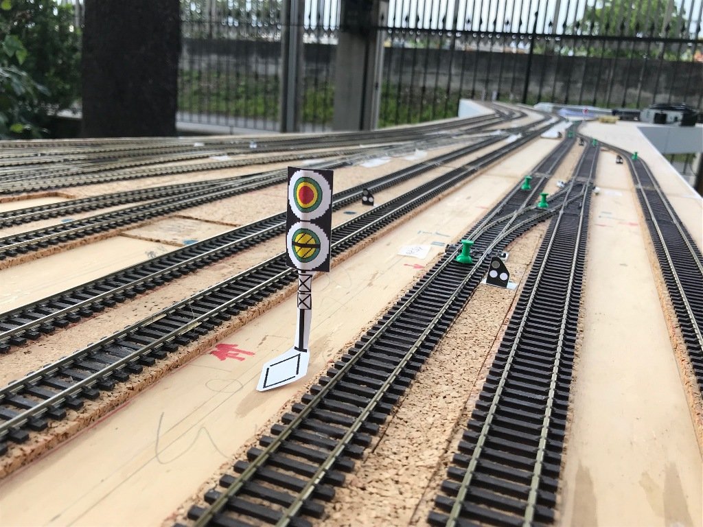 Al momento abbiamo terminato il cablaggio di binari e scambi, la programmazione degli indirizzi dei decoder degli scambi e la creazione degli itinerari