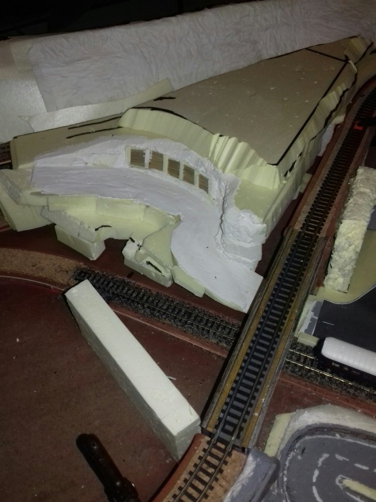 La mia idea di come rivestire il muro dietro la stazione la stradina che porta al laghetto... Visto che la zona in prossimità del passaggio a livello non mi piaceva come proposto dalla DeA...e visto le varie incongruenze ho deciso di inventarmi ....una galleria che porta al laghetto e allo chalet... La collinetta della chiesetta.... E,infine la zona fattoria e una vista di tutto l'insieme.. E questo è quanto fatto fin ora....