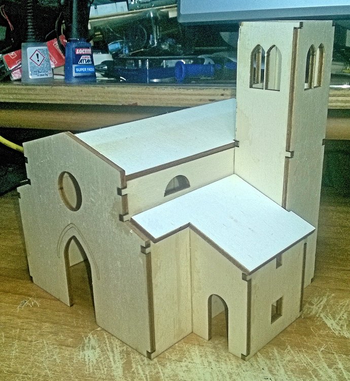 Ho già ritirato i materiale della chiesa che avevo disegnato, a parte alcuni piccoli accorgimenti da non sottovalutare per i prossimi modelli, ho assemblato e direi che non è venuta malemanca il tetto del campanile che farò in cartoncino oppure in 3D, anche il tetto così tagliato non mi soddisfa, è un problema riuscire a disegnare i coppi, penso proprio che anche questi li farò in 3D