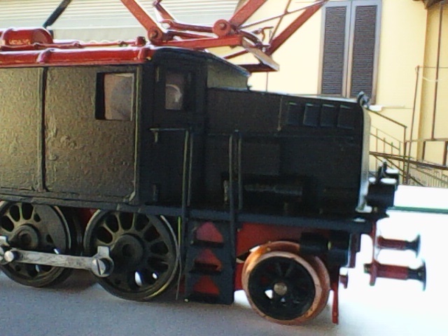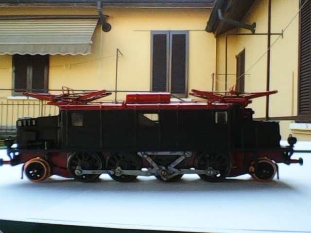 La configurazione della macchina è con le prese d’aria di ventilazione del tipo “ad orecchio” ed i tralicci di sostegno dei pantografi un po’ piatti, inoltre non era ancora comparsi il “camino” sul cassone del reostato e lo sfogo dell’interruttore/invertitore sul lato superiore dell’altro cassone.