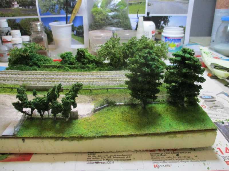 Nell'area c'è moltissima vegetazione, che ho ricostruito in toto usando teloxis, filo di rame e fogliame con erba elettrostatica di varie forme e colori.