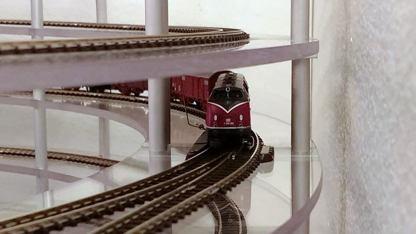 Mi è finalmente arrivato del materiale da 1zu220 e, in particolare, dopo diversi mesi dal primo annuncio di disponibilità della Marklin, la V 200. Un bel modellino, pesante e, col nuovo motore a campana, molto progressivo nel comando. E' anche meno veloce rispetto alle altre (a parte che deve fare ancora il rodaggio), ma mi era stato detto che i nuovi modelli avevano una velocità massima più realistica.