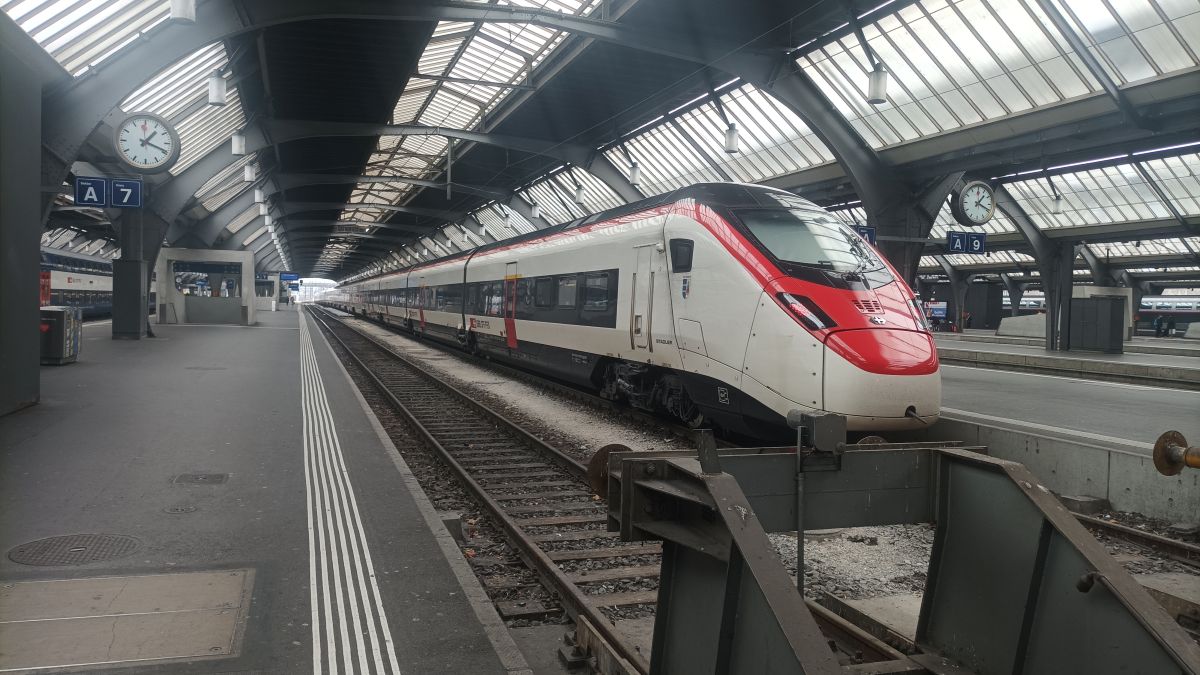 Il treno Eurocity 308 Genova-Zurigo parte alle 14:10 con fermate intermedie a Tortona (14.53), Pavia (15.19), Milano Rogoredo (15.42), Milano Lambrate (15.52), Monza (16.07), Como S. Giovanni (16.50), Chiasso (17.05), Lugano (17.30), Bellinzona (17.46), Arth-Goldau (18.45) e Zug (19.02) ed arriva a Zurigo alle 19.27.