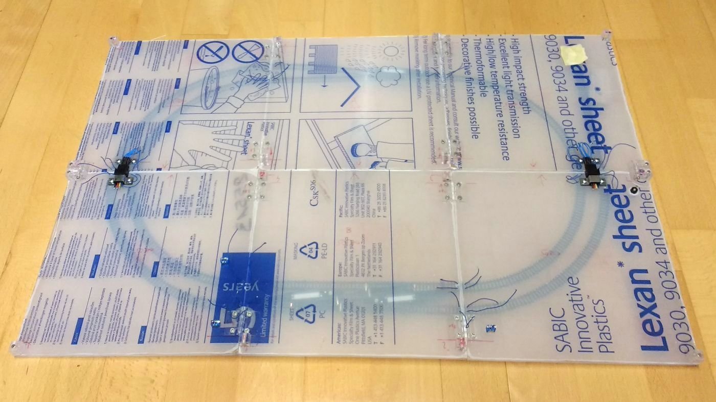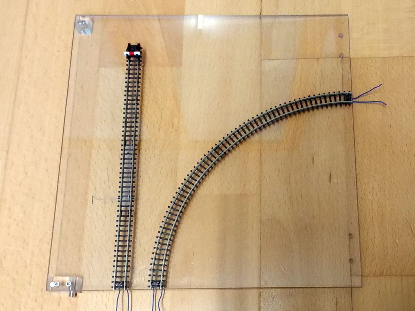 Nonostante avessi cercato di essere il più possibile preciso nel taglio (la rotaia esterna deve essere opportunamente più lunga di quella interna) e nella saldatura delle rotaie alle basette nelle testate, specialmente una curva non era perfetta e il posizionamento ha richiesto un compromesso nell'aggiustaggio.