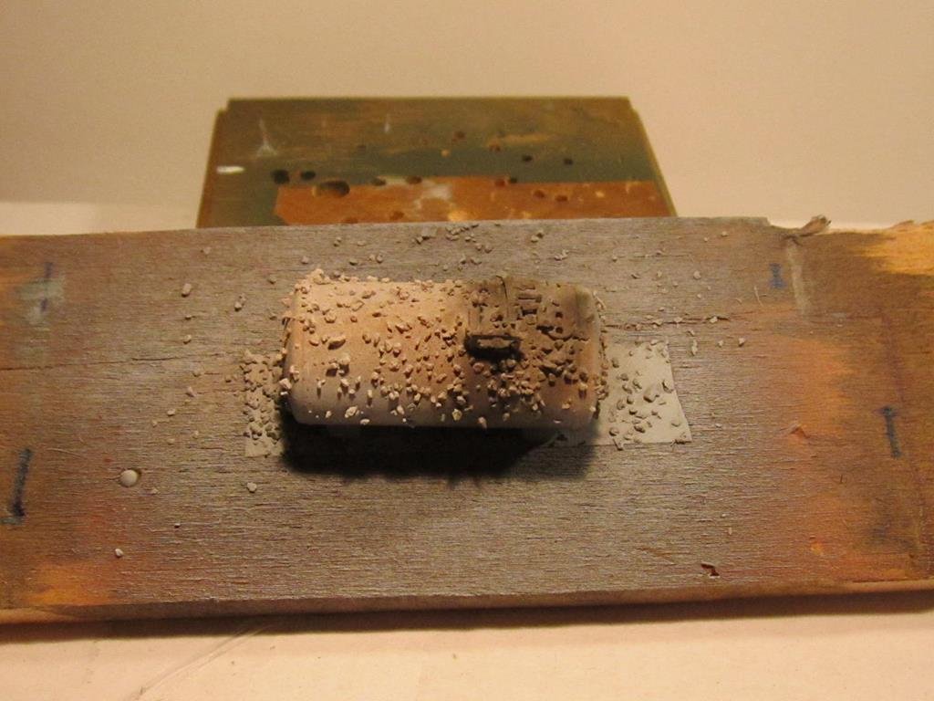 Si aerografa un velo di colore finale questa volta un colore grigio, a colore ben secco con un pennello a spazzole corte si leveranno i granelli di sale per rilevare il colore della ruggine.