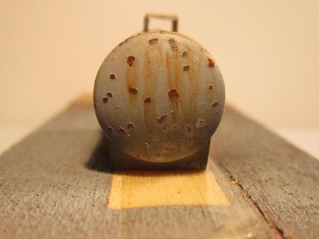 Una volta assemblata la cisterna il primo passaggio è stato aerografare la cisterna con un colore marrone rossiccio per simulare la ruggine.