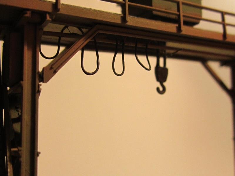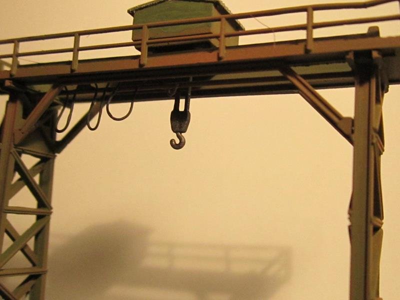 Intanto sulla gru a portale ho terminato di dare i colori di base anche sui dettagli cavo coassiale, gancio della gru e relativi cavi, cassetta comandi,blocchi di cemento, tetto cassa argano, scala.Toccherà poi fare qualche invecchiamento selettivo