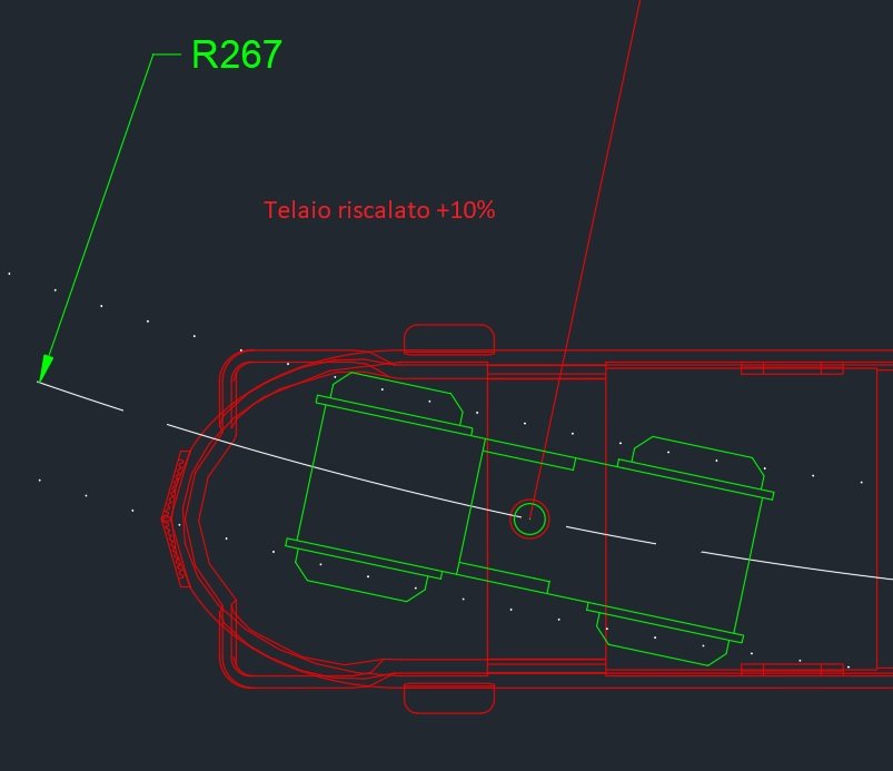 Provando ad aumentare la dimensione del telaio di un +10%, senza toccare il carrello, l'interferenza scompare.