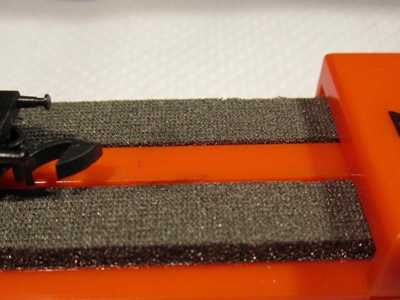 Si presenta molto semplice come attrezzo una base in plastica, i due nastri elettroconduttivi goffrati per una leggera abrasione, due coccodrilli per la connessione elettrica. Accanto ai nastri troviamo due fessure per tutta la lunghezza dei nastri verso la parte interna dove inserire i bordini ruote in modo che il piatto sfreghi sul nastro. Verso i coccodrilli uno scalino per fermare la loco quando alimentiamo in modo da fare ruotare le ruote tramite il collegamento al trafo. Una spruzzata di spray disossidante sui nastri è possiamo iniziare a pulire le ruote velocemente.