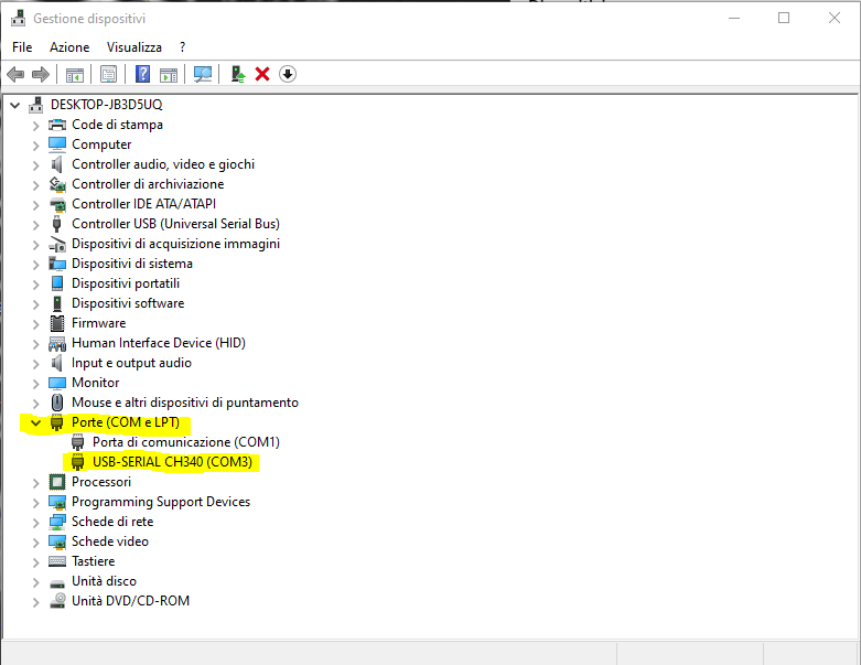 Nel mio caso, Arduino è collegato alla porta COM3 ed usa un driver CH340. Va bene!