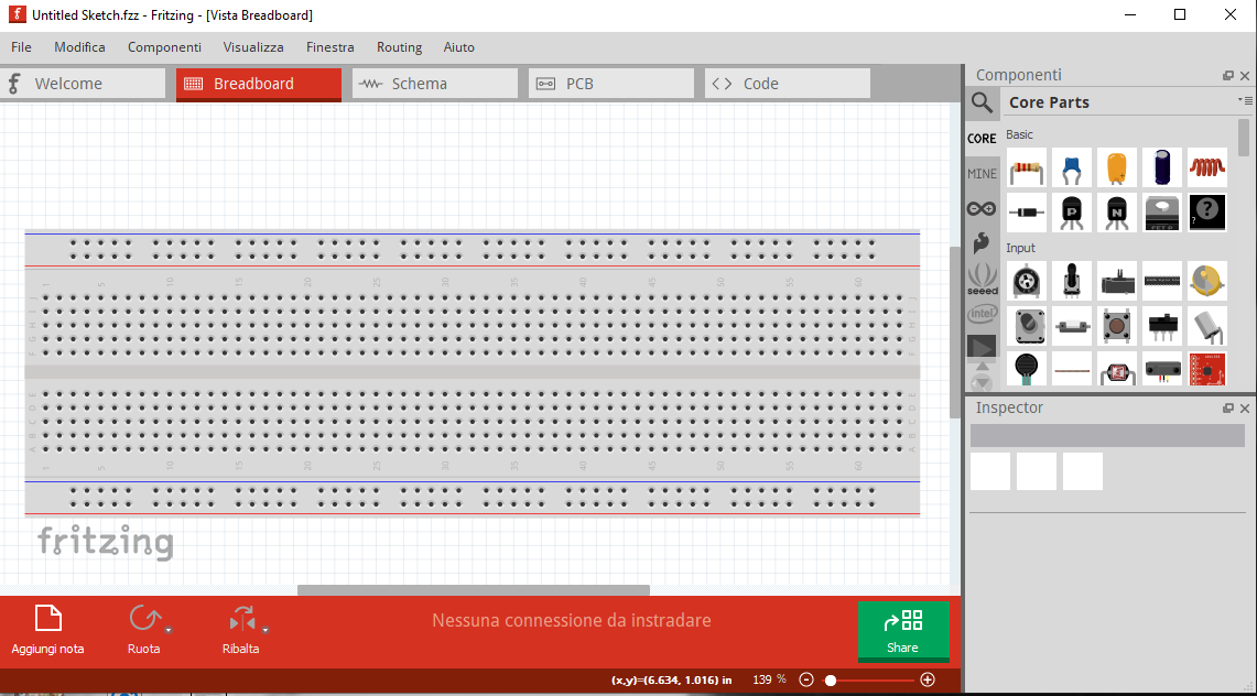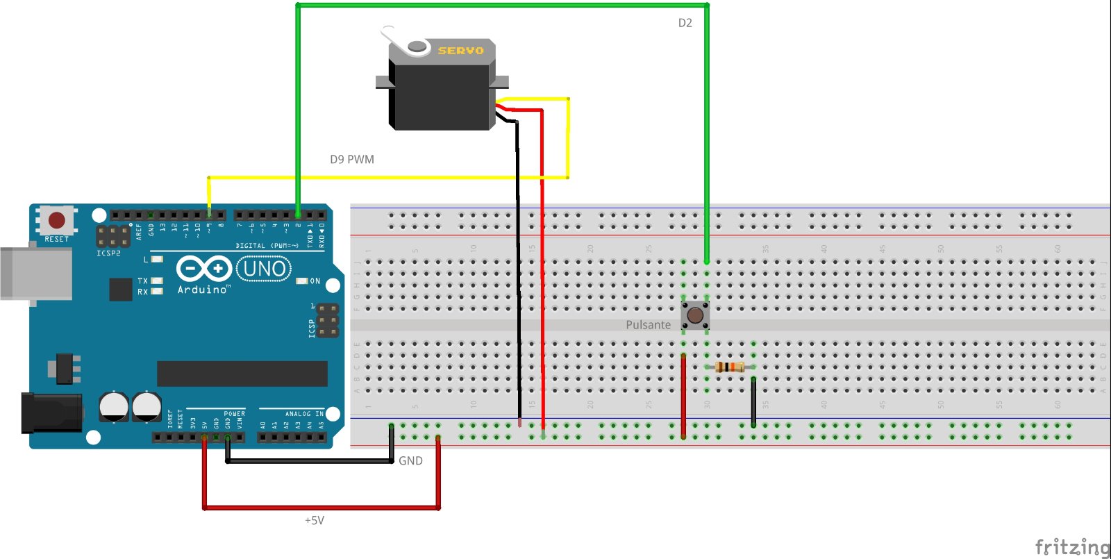 Di solito, nei tutorial vengono mostrati schemi elettrici fatti con il programma Fritzing che usano una breadboard e fili volanti; questo tutorial non fa eccezione.