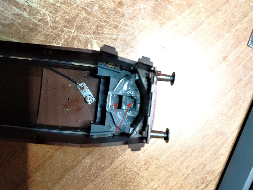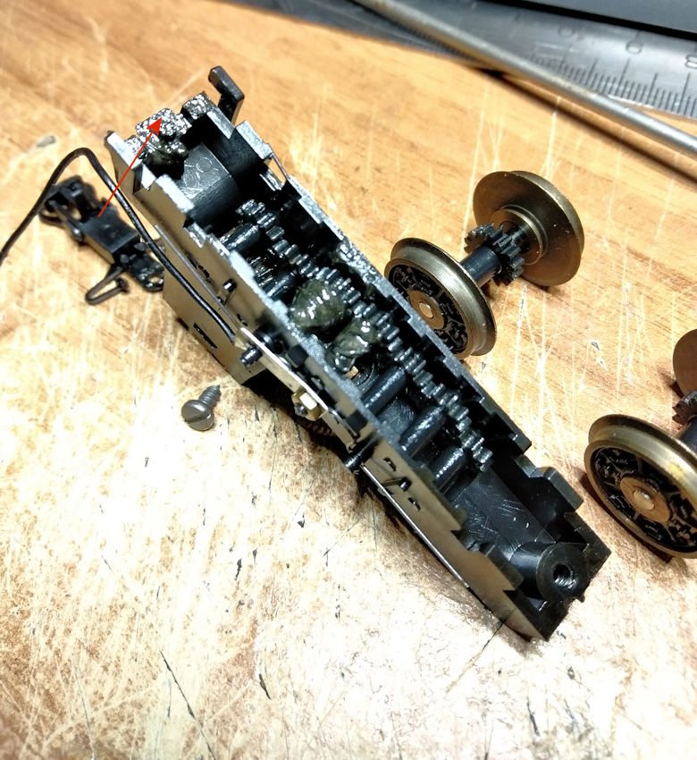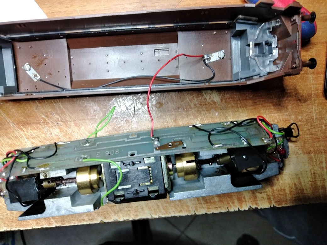 Grazie per le risposte, se asporto il pcb dove appoggio il decoder, non ci sono supporti piani e metterlo sul motore non mi sembra una posizione felice, dovrei creare una basetta con larghezza uguale al pcb e inserirla nei supporti presenti, per le luci penso che non sia un problema sostituire con i led, la basetta nelle istruzioni la vedo come accessorio di ricambio e presumo che si possa togliere per fare la modifica senza operare direttamente sul modello, riguardo alla lubrificazione è un lavoro che non ho mai fatto e qui chiedo umilmente a te Giuliano, che sei un esperto, consigli su come poter procedere e quali prodotti utilizzare, ho anche letto di utenti che hanno smontato e lubrificato gli ingranaggi, questo mi fa paura non so se sarei in grado di rimontarli come si dovrebbe senza fare dei danni [101], al momento ho solamente notato che i due alberini della trasmissione sono ingrassati e uno un po' di più dell'altro e non so se il lavoro sia stato fatto precedentemete da qualcuno o sono così dalla costruzione, si nota anche sulla seconda foto quello di dx è più scuro di colore dovuto appunto al grasso che c'è sopra, altra cosa le CV, qui ancora sono in alto mare, dovrei capire quali settare anche in base al decoder che uso.