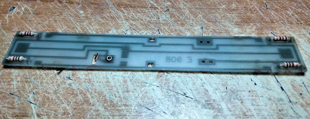 dopo aver provato che tutto si muoveva bene, motore compreso, mi sono dedicato alla parte elettrica, guardando bene il suo pcb ho visto che facendo solo qualche piccolo lavoretto si poteva riutilizzare per applicare il decoder, ho tolto i diodi posizionati nella parte inferiore e sostituiti con delle resistenze da 1k per l'uso dei led al posto delle lampade