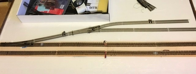Su queste mensole si appoggerebbero i 2 binari fissati su listelli, a loro volta guidati ai lati da riferimenti fissi, binari giuntati a loro volta da piccoli segmenti di binario tramite le canoniche scarpette (proprio come sul mio attuale caricatore). In questo modo le differenti lunghezze non sarebbero più un problema, l'operazione di carico/scarico sarebbe garantita e gli ingombri di trasporto sarebbero pari a poco più di 2 nuovi moduli.