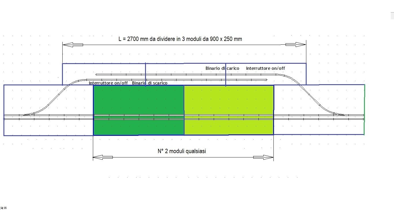 Per questo ho pensato a 2 binari indipendenti: uno per il carico al modulare e uno per lo scarico dal modulare.