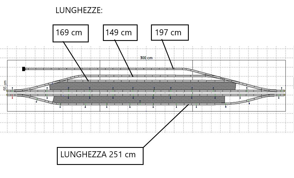 - due moduli standard da 100x55 con capacità di carico e scarico di 2 treni di lunghezza compresa tra i 120 ed i 140 cm;